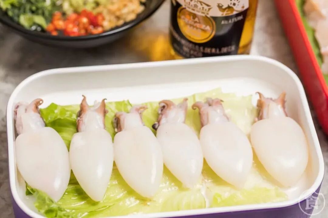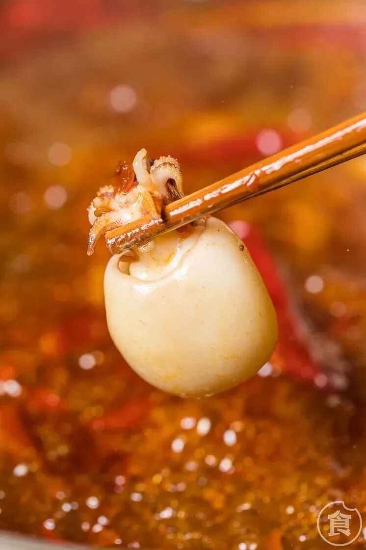 Q弹肥美的墨鱼仔来一盘!一开锅就全部丢进去涮熟,浸泡过汤底的墨鱼仔也吃得出鲜甜。