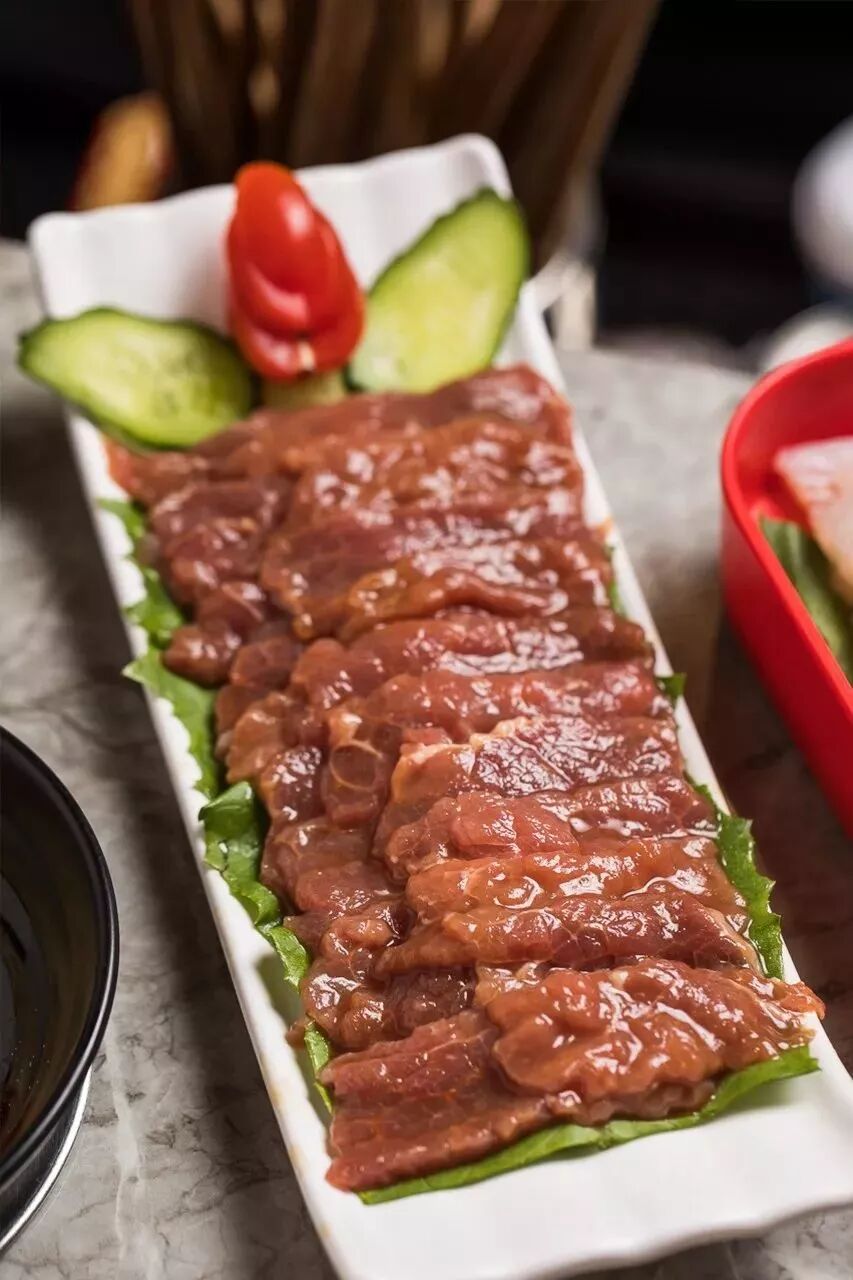 一串串吃肉不过瘾,可以拿一整盘鲜嫩牛肉/无骨巴沙鱼。三起三落,再蘸蘸自制的调料酱,一口吃完。哇~汁水爆开,超嫩滑!