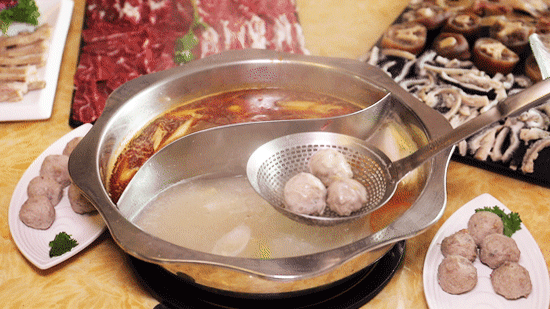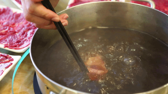 2/ 边煮边涮。先把要涮煮的牛尾、牛筋、牛腩、牛肚等下锅煮5-8分钟,期间再涮其他快熟的。