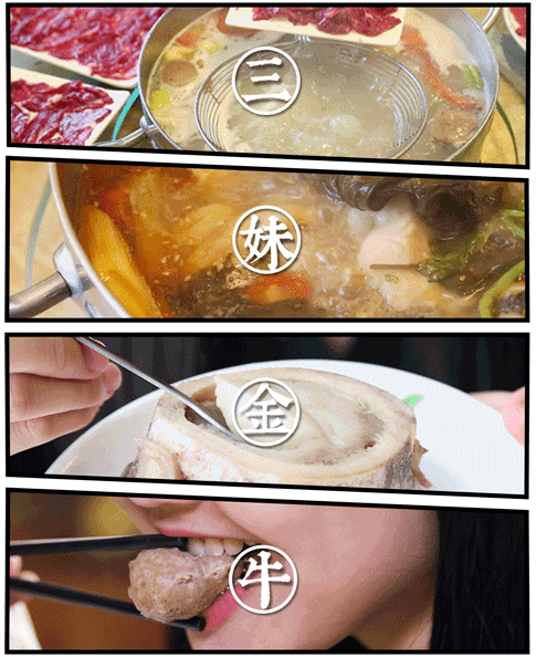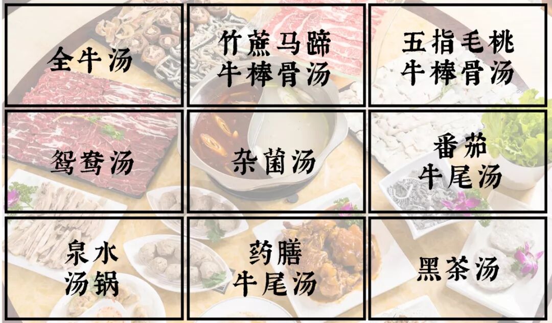 三妹金牛的锅底多达9种!主要来自牛的全身:牛骨、牛尾、牛鞭、牛筋等,再用20+种中草药熬制而成。低脂健康、不上火!