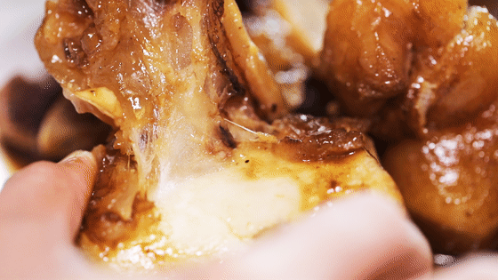 经过长时间焖煮的牛蹄,Q弹有韧劲,里面的牛筋焖得软糯。沾满酱汁,一口一啖肉,一咬就骨肉分离。