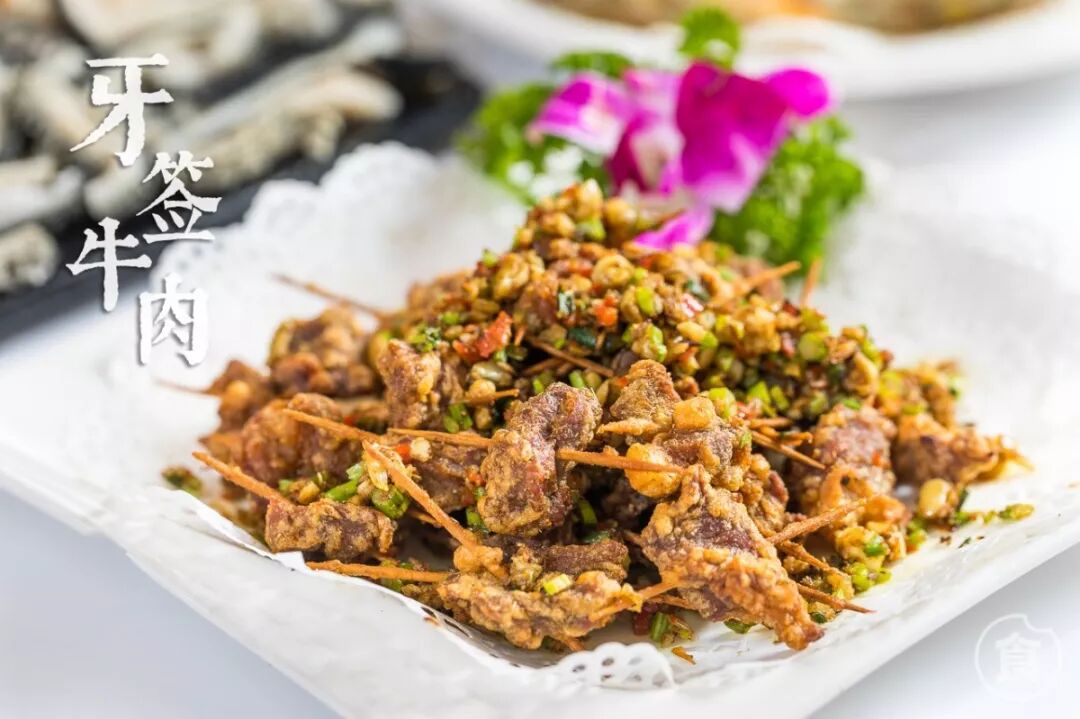 趁热气上桌的牙签牛肉,外酥里嫩、酥香可口,吃起来满嘴飘香。作为下酒小零食很不错,香辣有嚼劲~