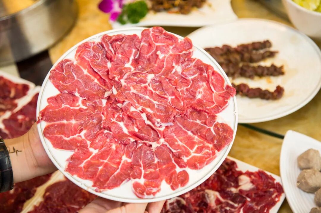 3/ 乡下土黄牛肉,当天宰杀上桌,新鲜看得见。牦牛肉、牛颈肉、脚趾肉、雪花牛肉、牛心顶、牛百叶等在滚汤烫2次,约10秒就能吃。