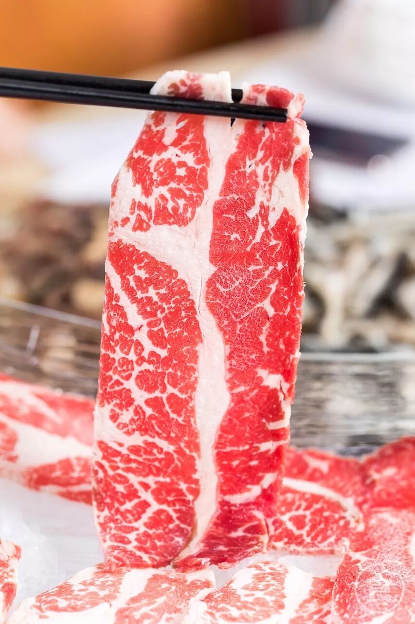 想感受被大片牛肉塞满嘴的满足,A级雪花牛肉能给你~这盘进口牛肉,白肉和红肉几乎是1:1的比例。片片牛肉肥瘦相间,纹理清晰,入口柔嫩醇香。