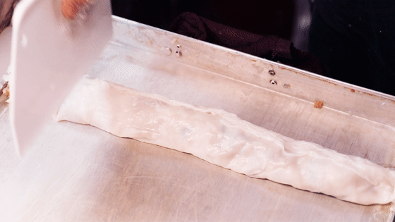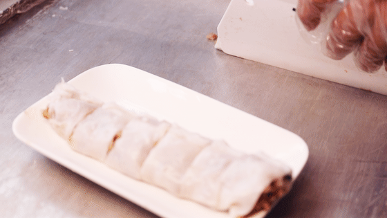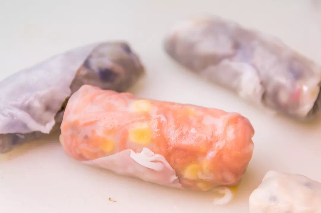 熟透后把面皮和馅料一起卷起来