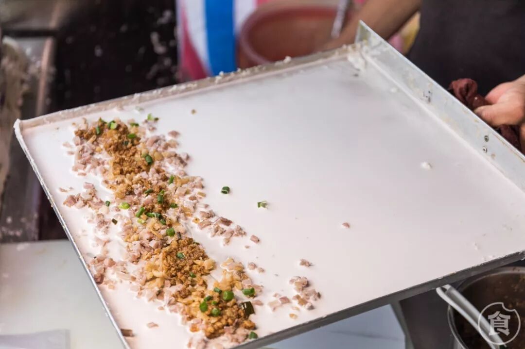 把特别调制的粉浆倒入蒸屉
