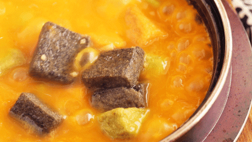搭配秘制的南瓜高汤,浓郁的汤汁咕嘟咕嘟响着