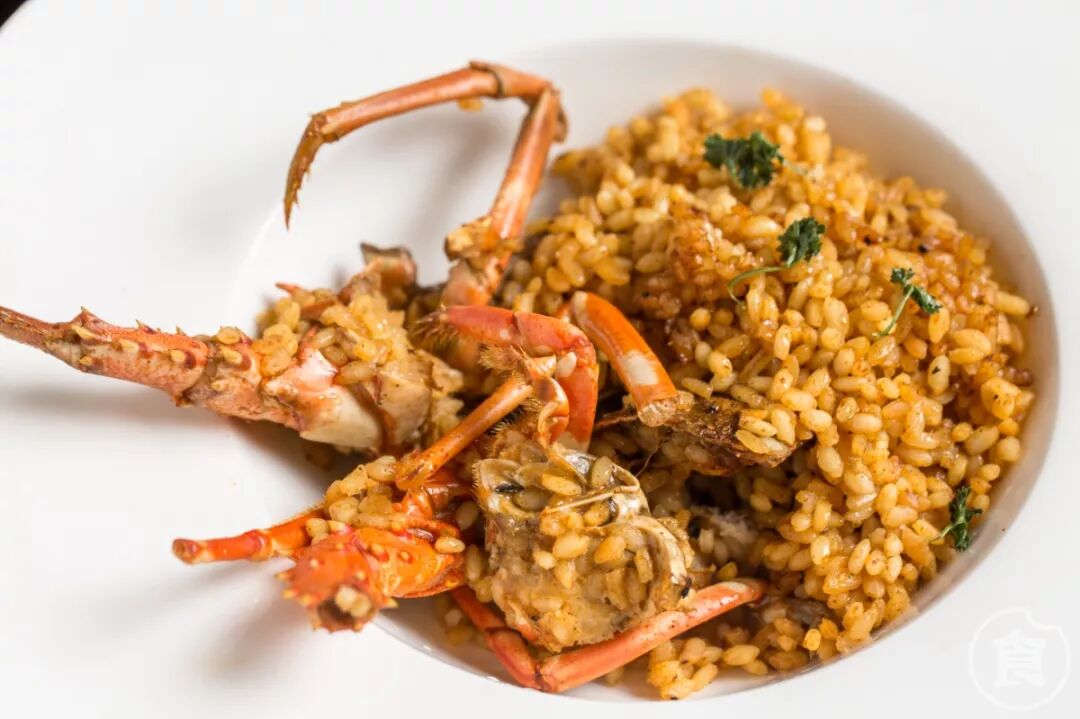 用海鲜汤将生米直接烹饪,会略带夹生状态