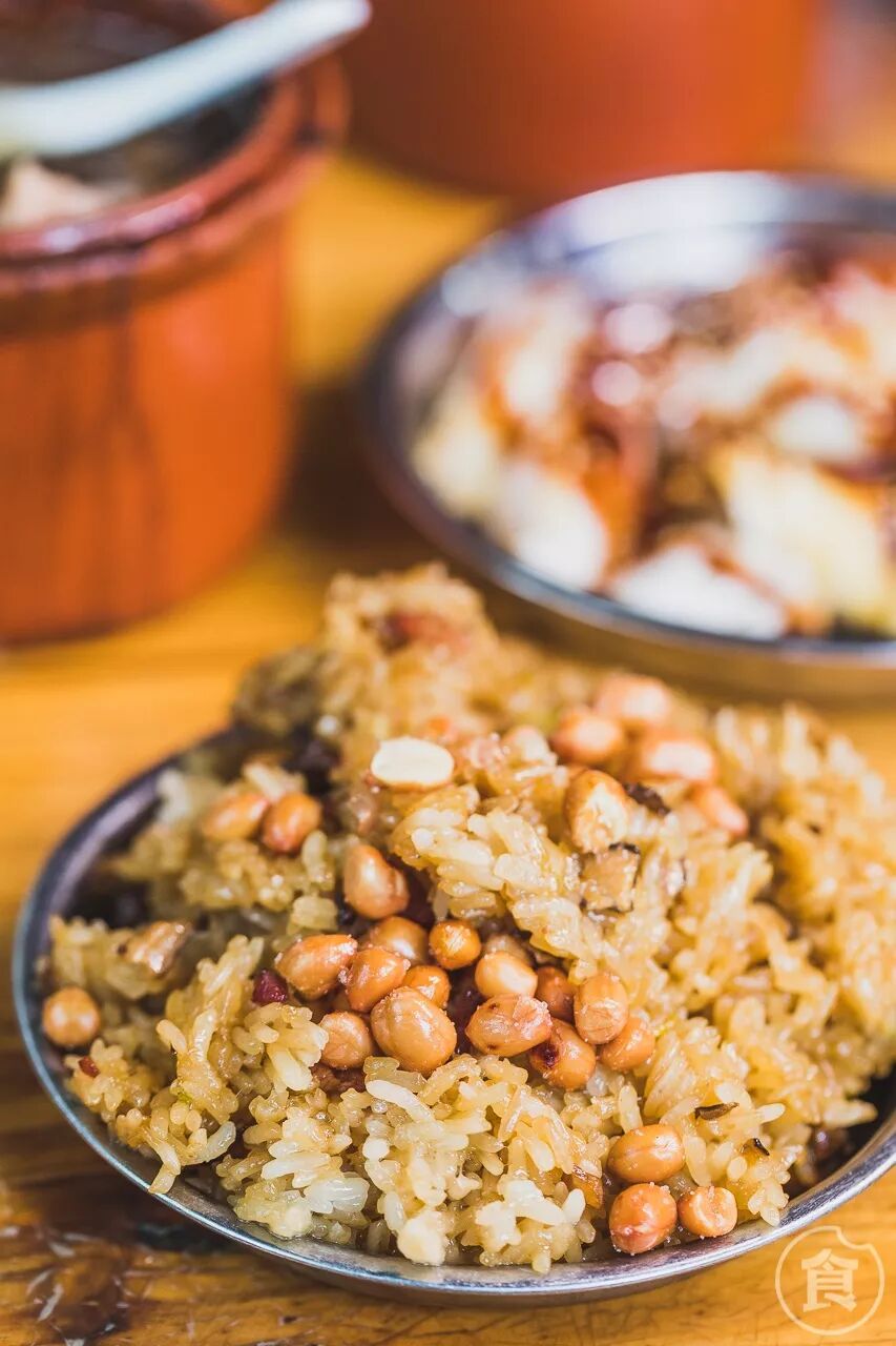 瞧瞧这炸的金黄的花生米,粒粒分明的糯米,还有腊肉在里面。想象之中,口感会是咸香糯的结合。糯米饭不黏牙,反而越嚼越香,一大份饭很快就会吃完。老板,打包两份带走!