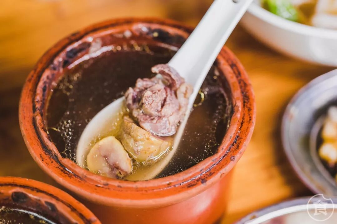 板栗保留的还是很完整的,大颗大颗吃起来才舒服。板栗很香,汤甜肉烂,是这个味道很难忘了。真想再来两盅,下次早点来!