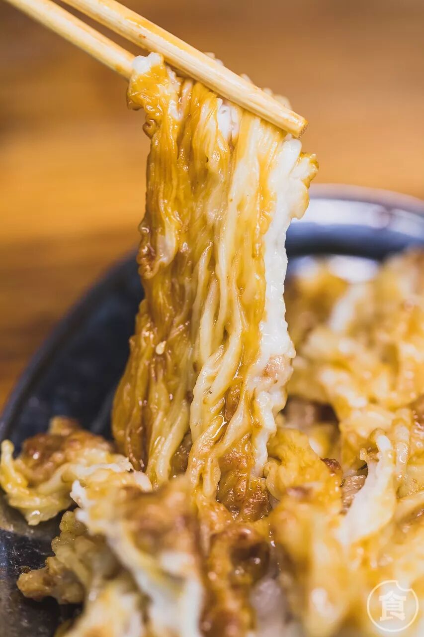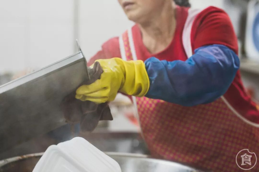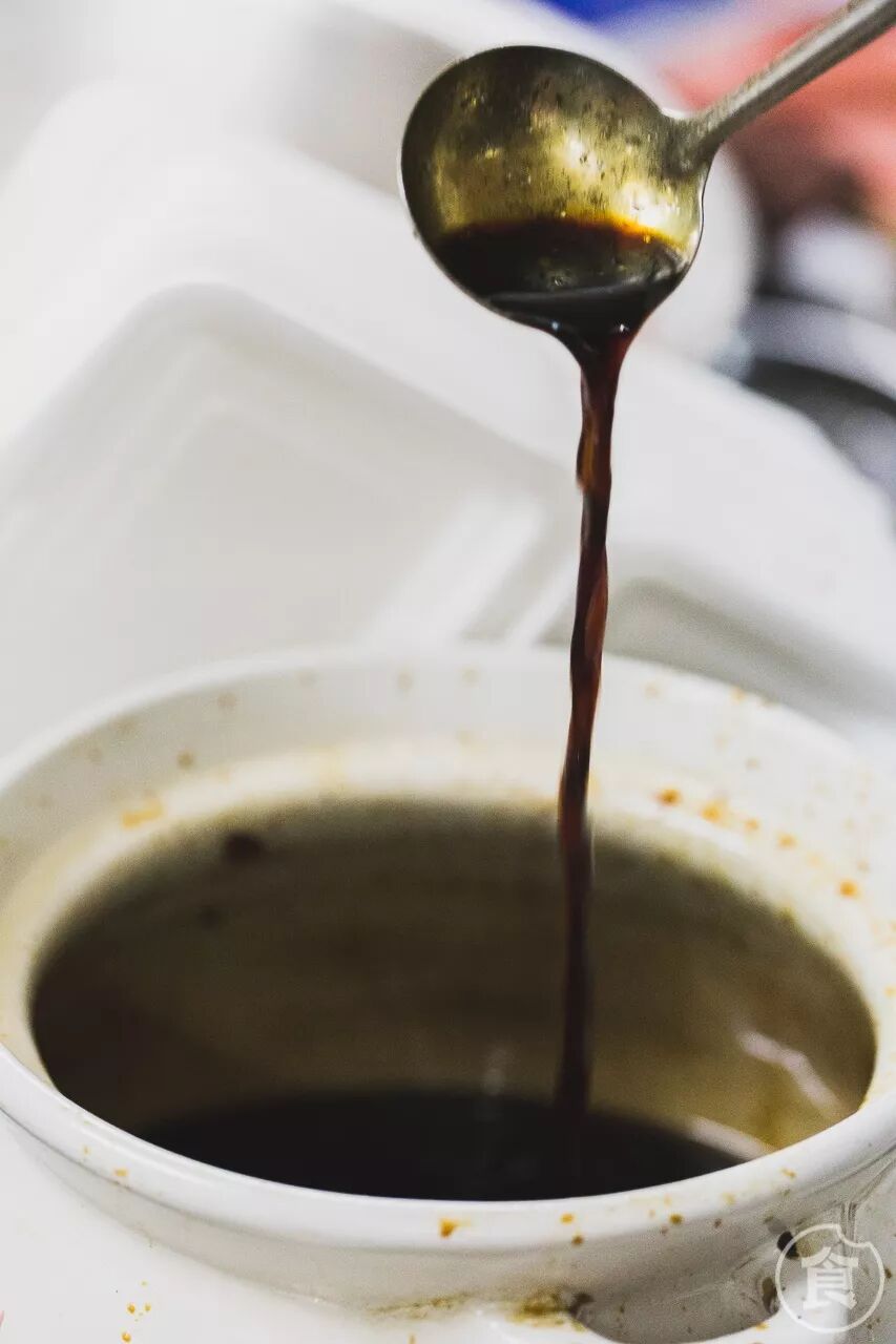 从蒸板上刮下来的肠粉,刮的气势很足,讲究个“快”,和从刮板甩下来的利落。淋酱油是关键,这一大锅酱料,都是清早炒好的,刚好够用一天。