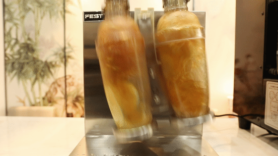 每一杯柠檬茶喝之前都要坐上“摇摇机”,充分混合柠檬和茶底。这波魔性操作,不仅提高效率,还保证了出品的味道。