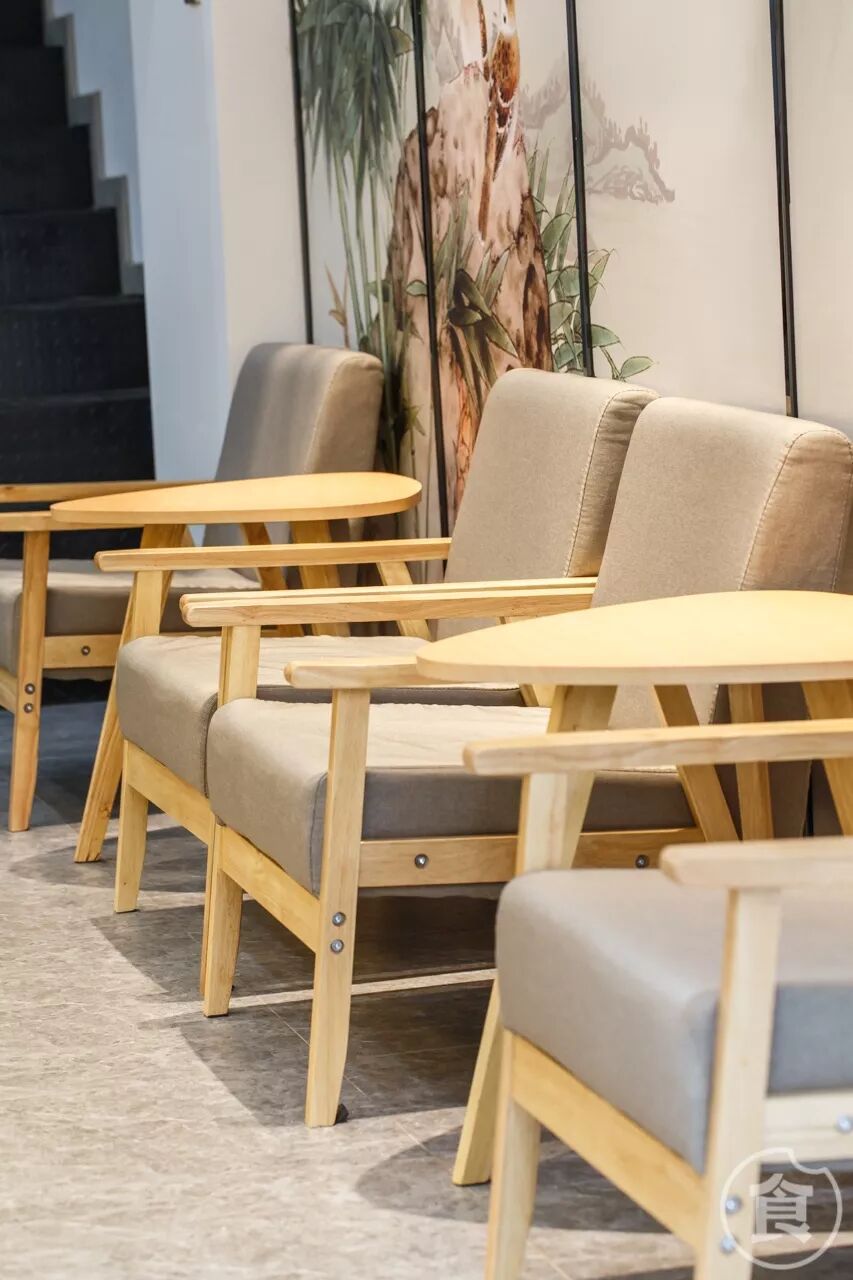 店内设有两层,一楼是吧台和软沙发,供给等待外卖的客人休息;二楼也设有座位,适合和闺蜜朋友短暂聊天喝茶。放松也不过一杯茶的功夫~