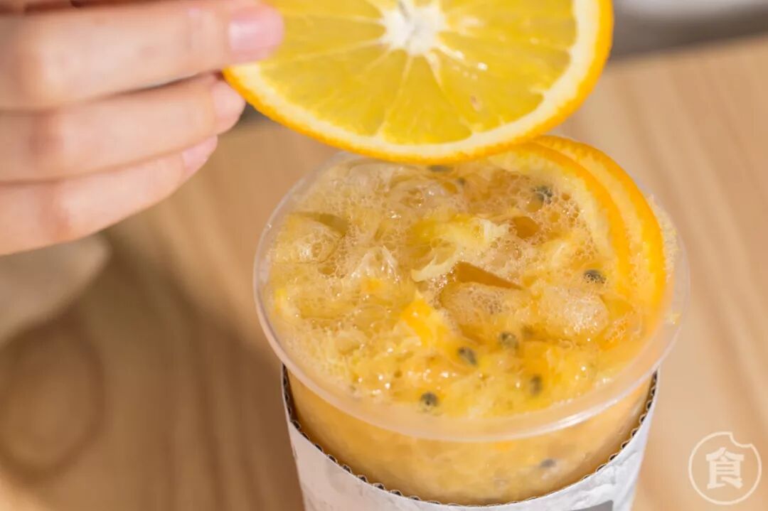 一杯百香橙,几乎要鲜榨一整颗橙子作为基础茶底。在店内吧台处,可以清楚看到他们把真材实料带给大家。