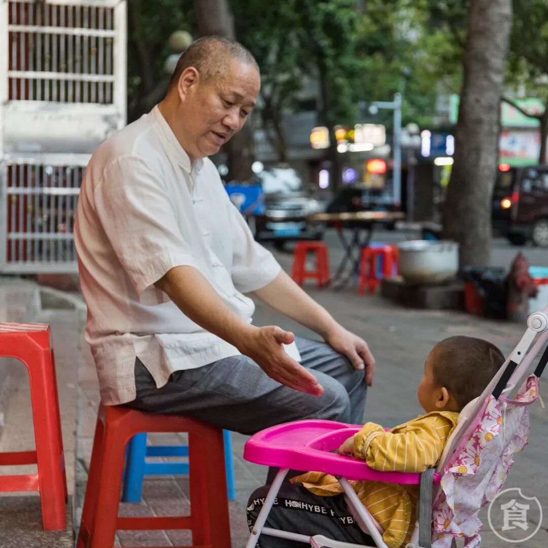 屁颠地跟着爸妈来这里吃宵夜的场景