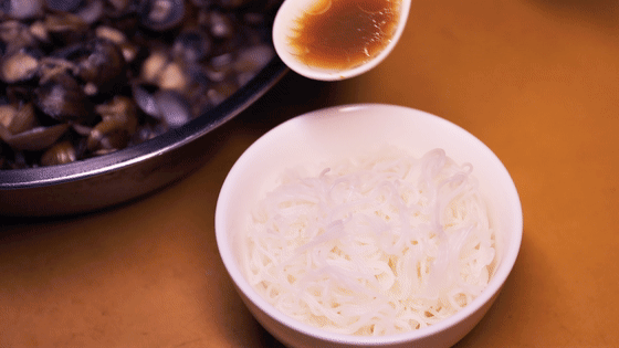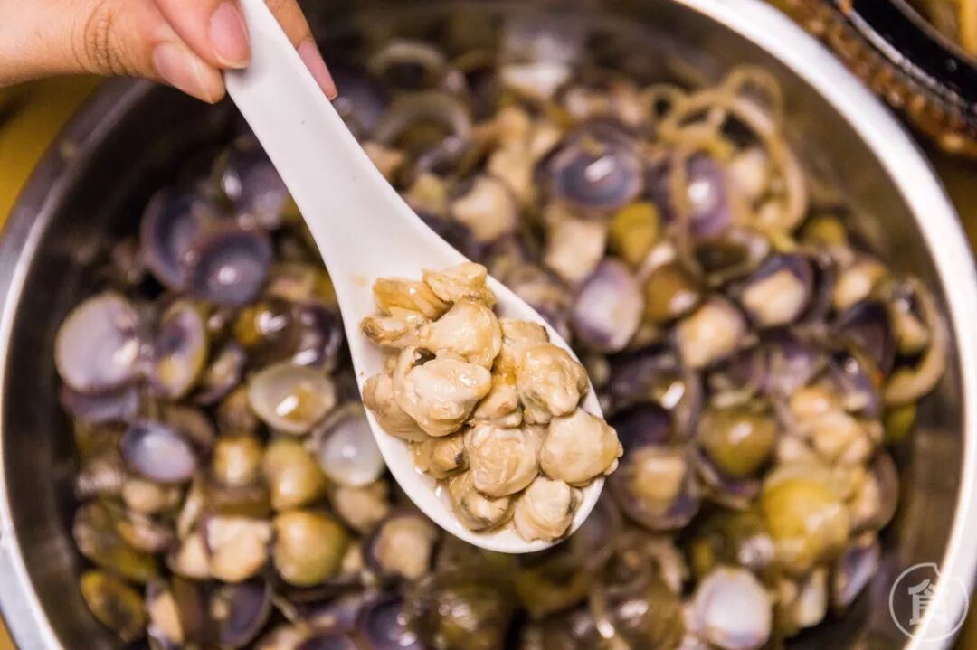 河蚬烫熟,用店里的秘制酱汁捞匀