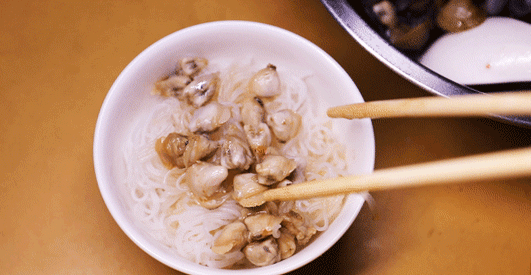 “一份捞蚬、一份米丝、再加一份排骨煲”