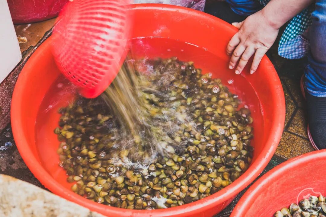 倒蚬、浸泡、淘洗…一气呵成的动作