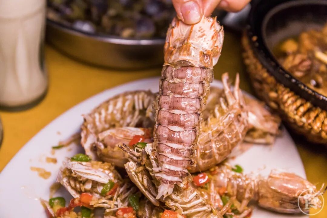 濑尿虾的个头很大,外壳爆炒得很酥脆