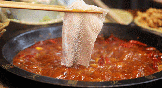 等到毛肚微微卷曲,裹着红油一起塞进嘴里