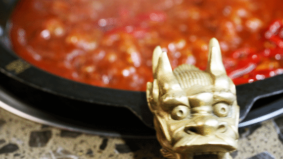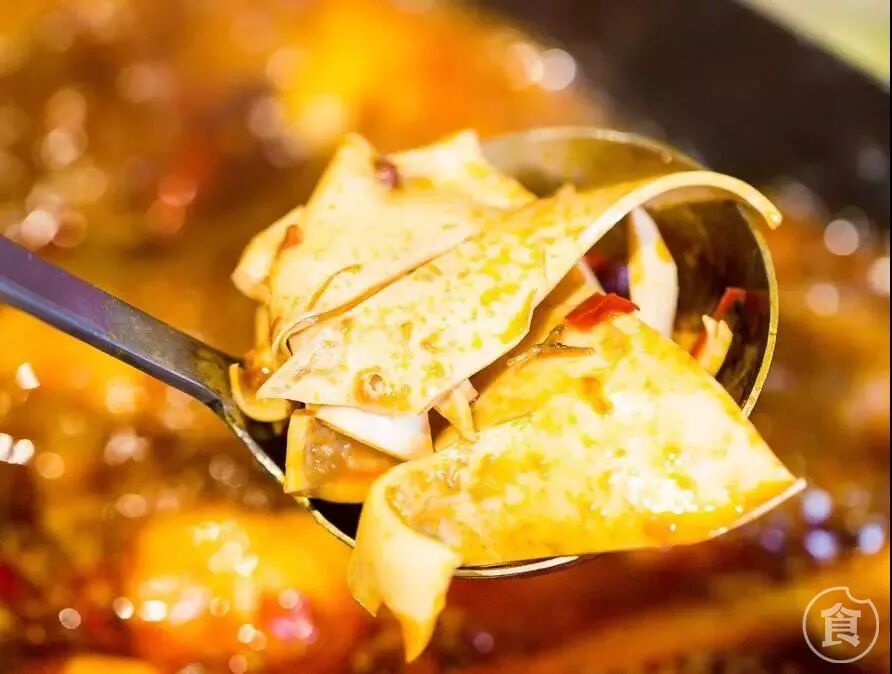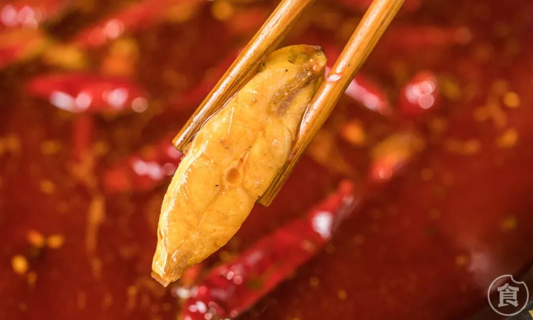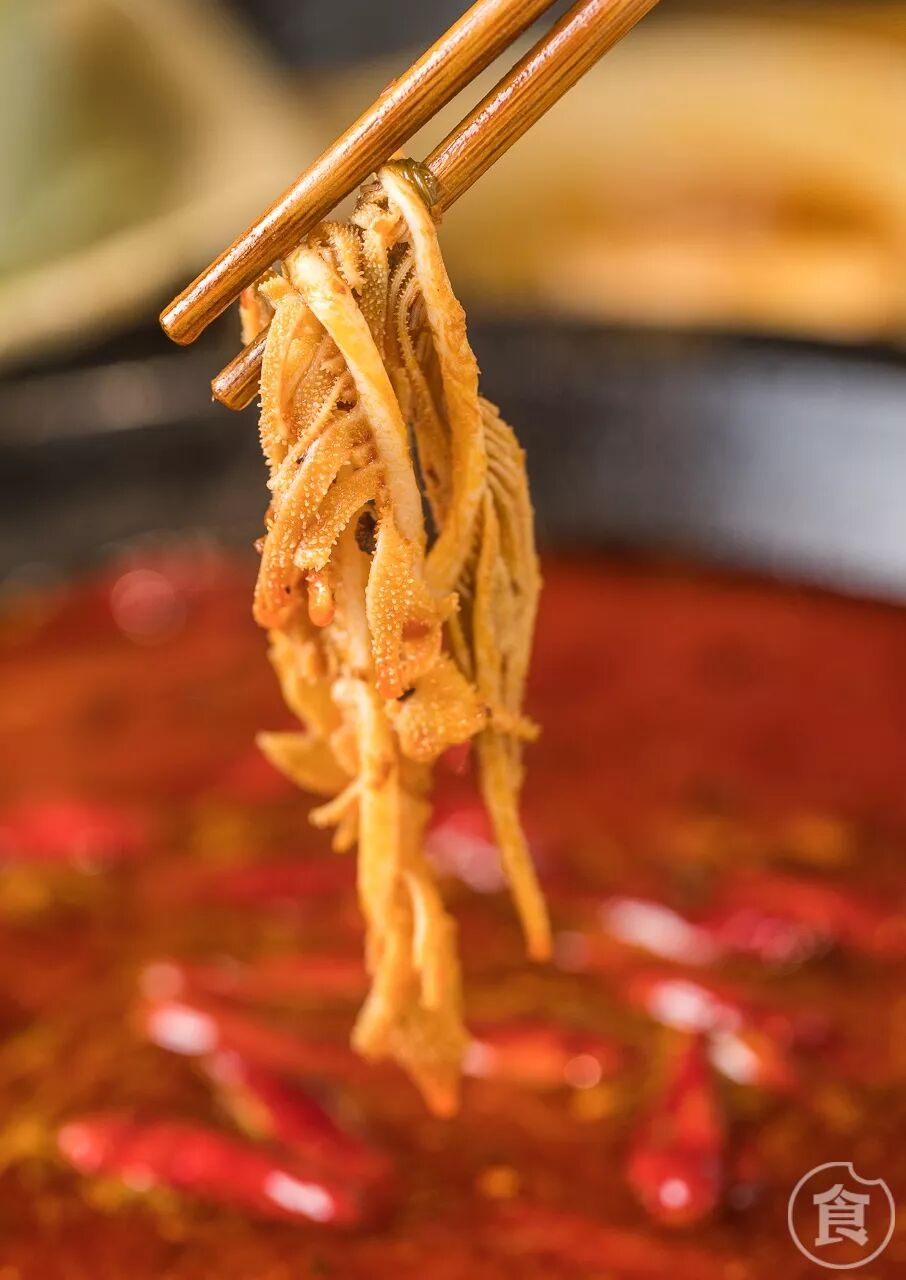 表面的辣椒干料,在涮煮后还是紧紧包裹
