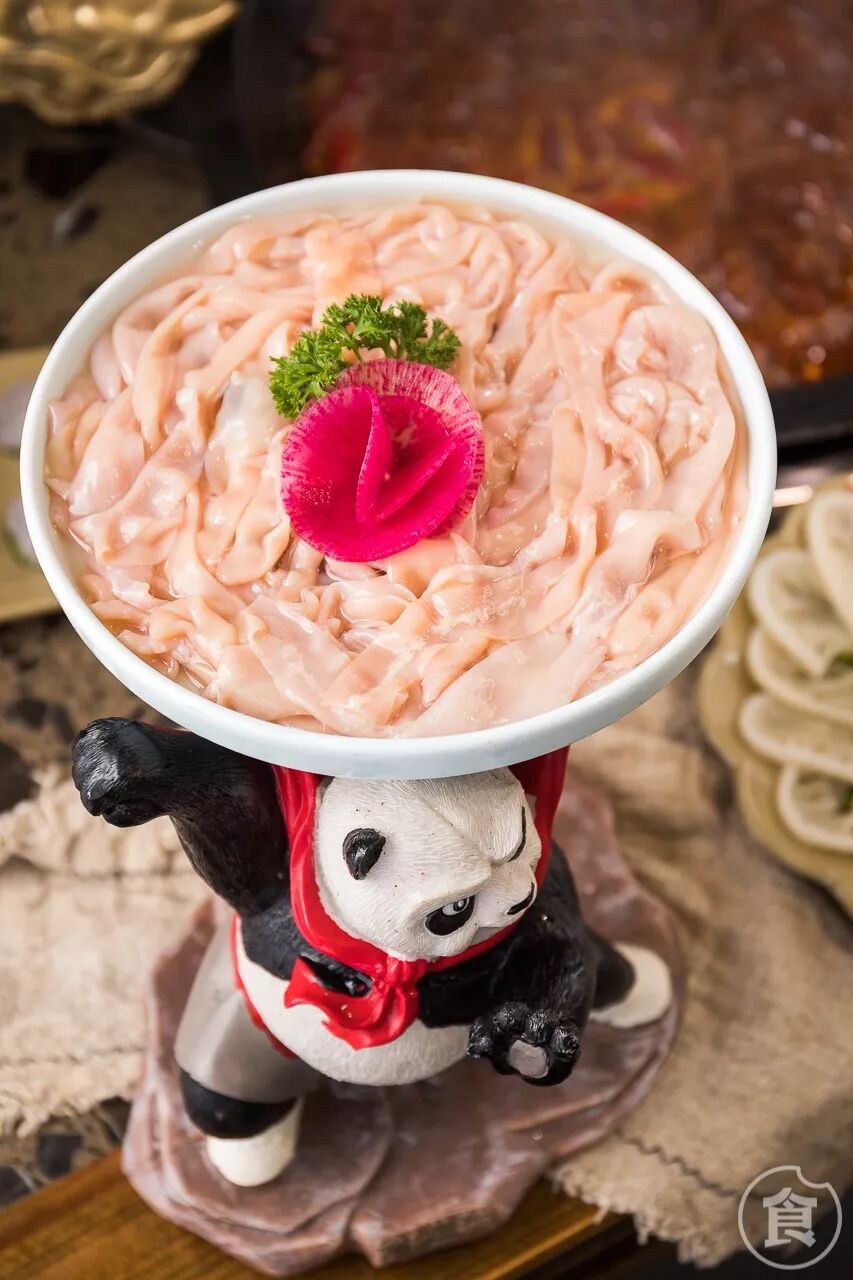 鸭肠用功夫熊猫托盘装盛,趣味十足