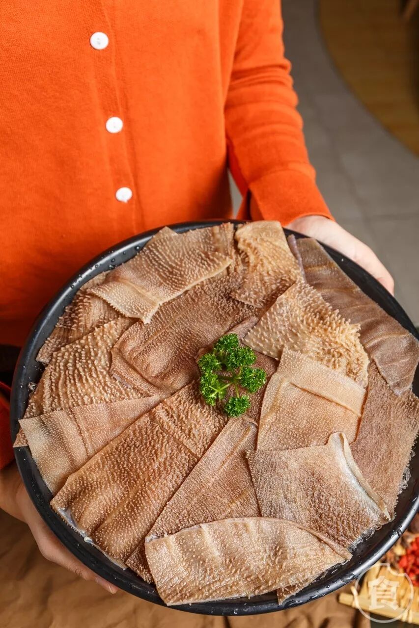毛肚和黄喉讲究鲜嫩脆爽,大片且够厚