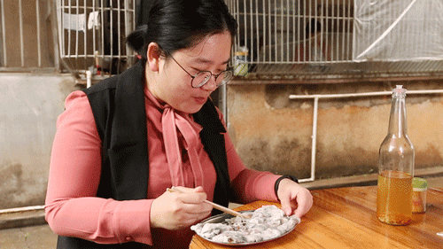 跟其他不一样的地方是,这里不会把粉切开,而是整条卷起来。操作有些不同,看上去也很过瘾。用柴火烧的粉皮口感更软一些,可能是我牙口不好,所以我觉得非常合我的喜好。