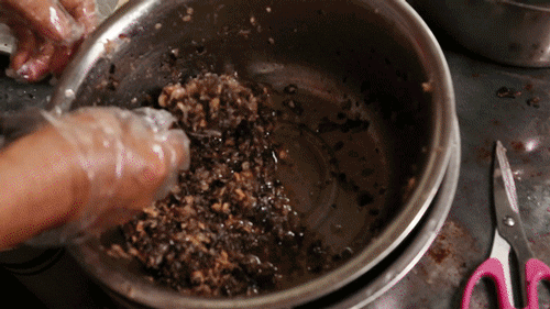 特别的面皮要搭配正宗的越南口味肉馅才行!白洋葱、木耳、猪肉是经典三宝组合。