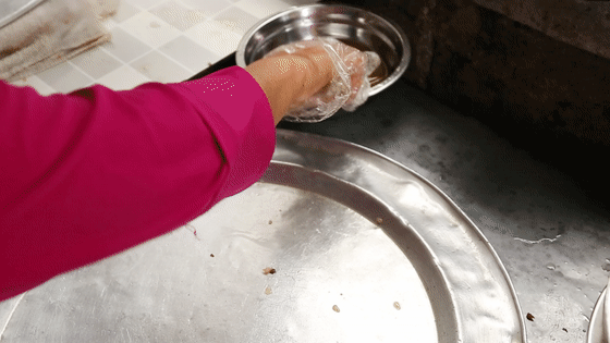 这家的面皮很大一张,从中间分开可以做两条肠粉出来。