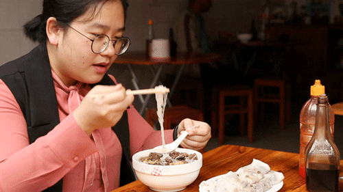 每天凌晨五点,一家人就要为当天的营业开始忙碌了,起锅烧水,打粉,剁肉馅儿。过程不复杂,却需要用心。
