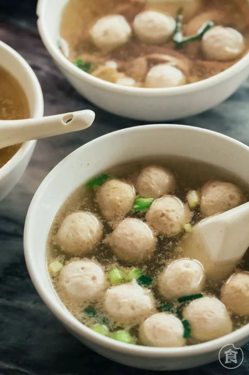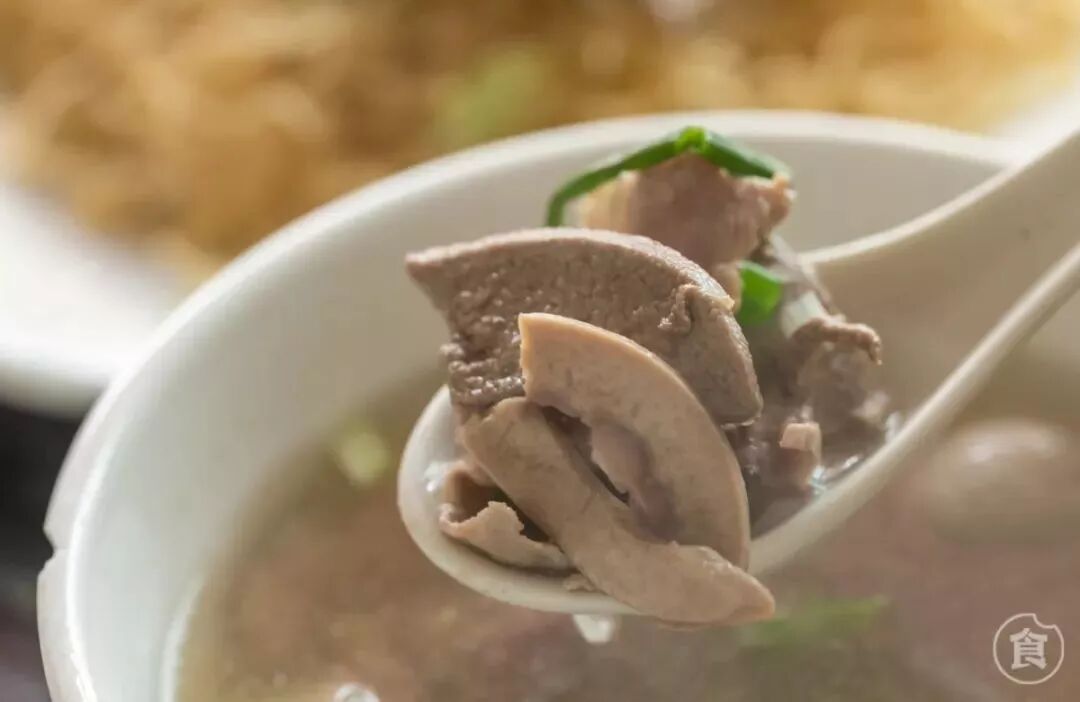 有肉丸汤和肉丸猪杂汤两种选择。肉丸很爽口,猪杂的种类也很多很新鲜。一口一颗放进嘴里,再“嗦”一口胡椒味很重的汤。热辣辣的汤进到胃里,整个五脏六腑都舒服了。