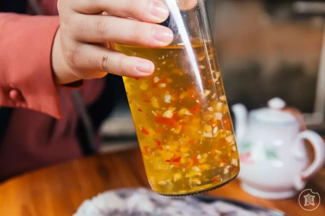 从小到大吃的肠粉,都是淋酱油,但是阿姨却要我淋醋?!吃越南肠粉,真的离不开这个宝藏,目测这瓶醋是用蒜和辣椒做成的。