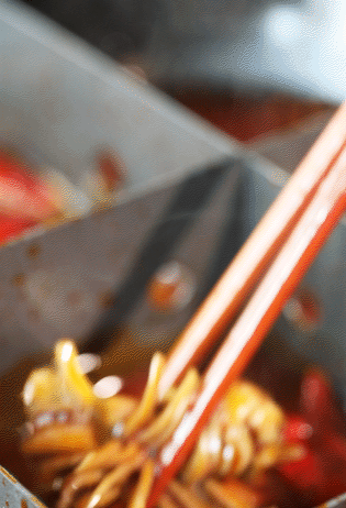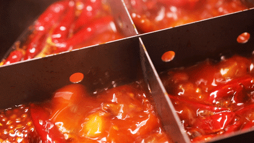 麻辣鲜香,光看着火锅咕噜咕噜地冒泡