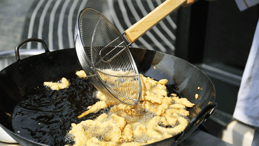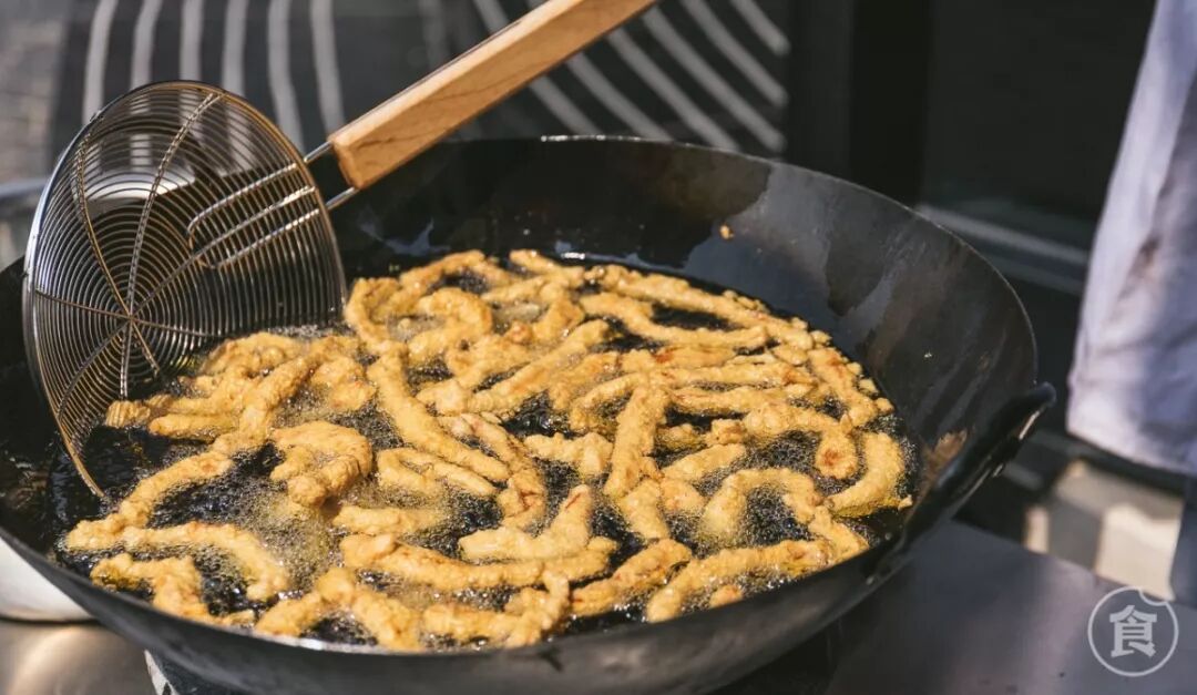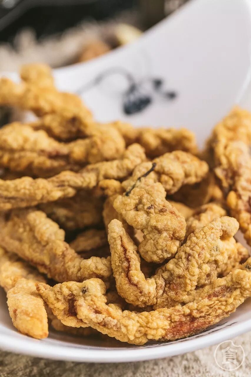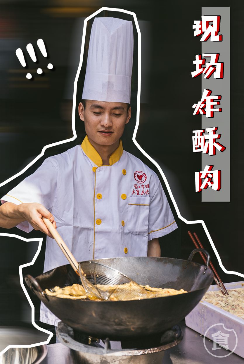 现炸刚捞起的酥肉,马上就可以吃啦!