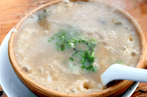 以一碗满满新鲜猪杂和煲得绵绸柔软的粥