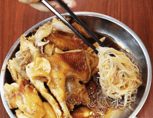 店里窑鸡还有配上米粉,沾肉汁吃最为销魂。绵软的米粉吸收了酱汁,没有过多的油腻感,香气直逼入喉。