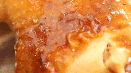浇上油亮的酱汁,汁水顺着鸡肉缓缓流下,酱汁吸收了鸡肉自带的鲜甜,很是惹味,看多几眼都会流口水。
