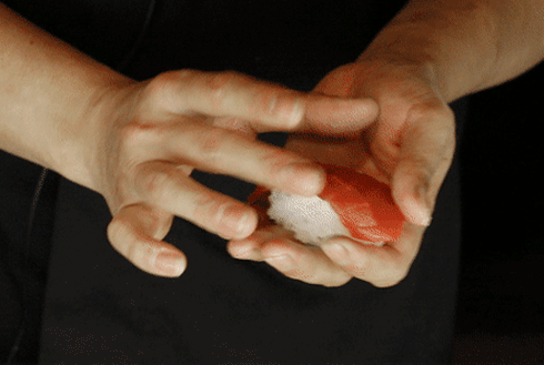 2.建议沿用传统的寿司吃法:用手拿起寿司,一口吞;