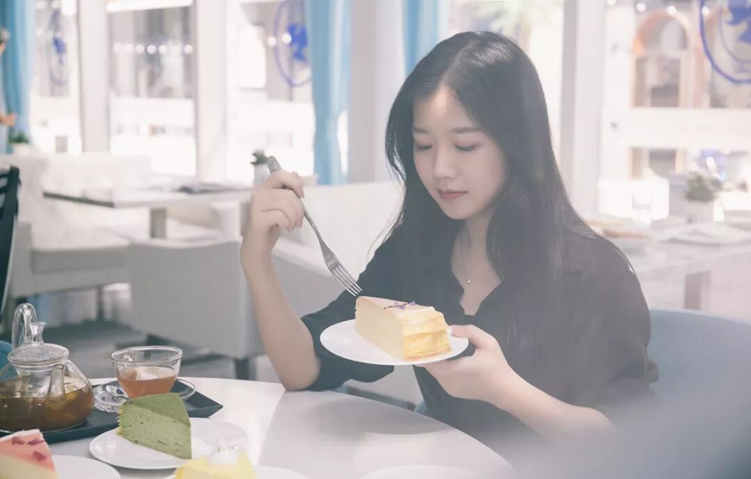 这里的每块千层蛋糕都有着薄至透光的可丽饼,严格控制厚度和层数。