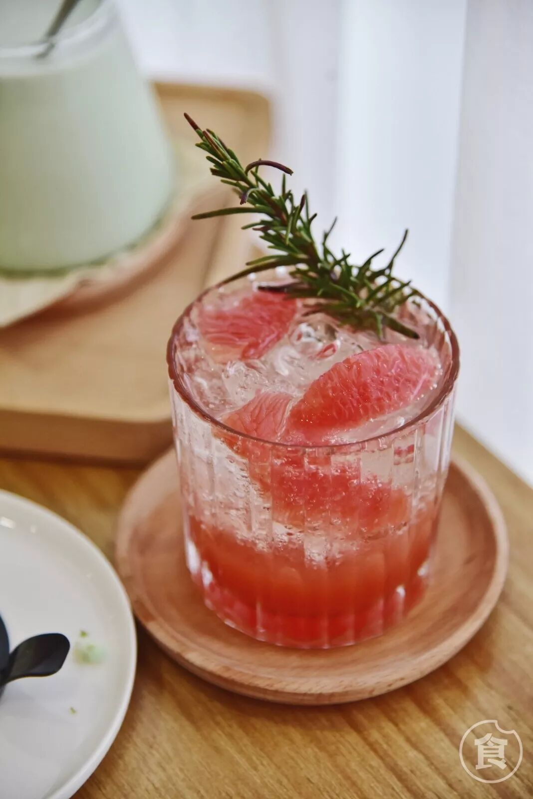 水果苏打加上美式咖啡,喝的时候将西柚与薄荷一起搅拌开,酸、甜、苦、辣都能在这之中感受得到。