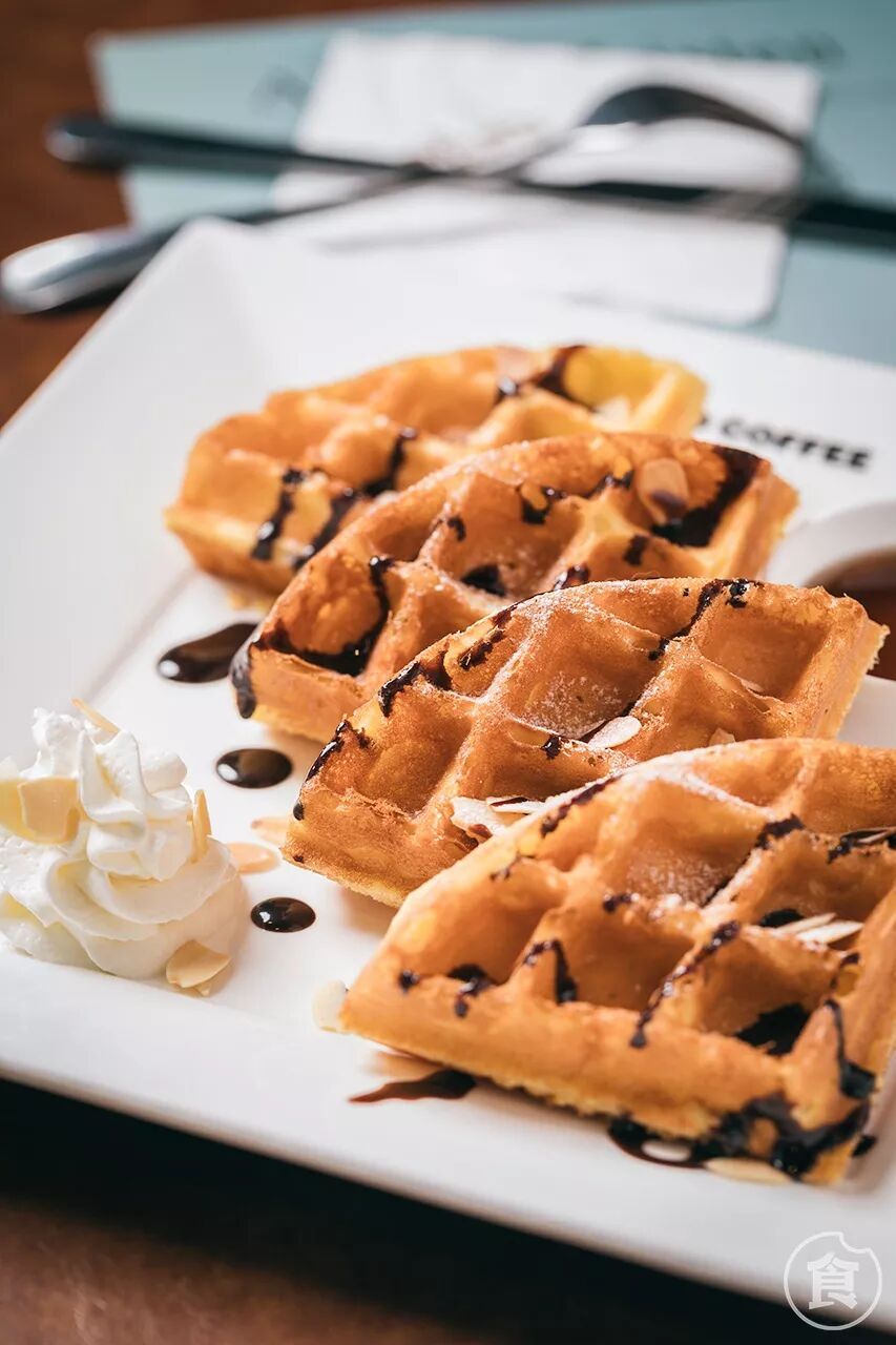 华夫饼带着浓浓的麦香,趁热淋上巧克力酱,便能吃得满口香脆。
