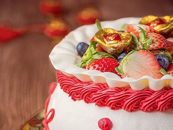 红色的蛋糕是由树莓果茸制成的天然色彩