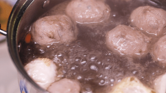 牛筋丸是手打的,煮熟后几乎大一倍。它偷偷藏满了汤汁,一口咬下去,弹牙爽口,肉间的缝隙偶尔还会爆汁!吃的时候可要小心别被烫到。