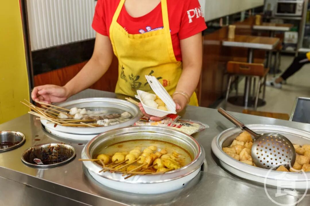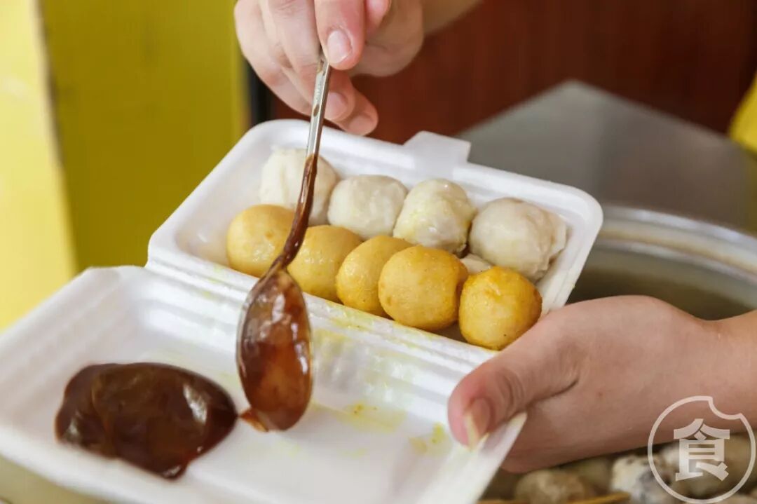 在小吃街里,花枝丸是走几步就能遇上的美味。丸子是经典的台式路边小吃,大家都很熟悉。可以烤、炸、煮,就是这么多样化!