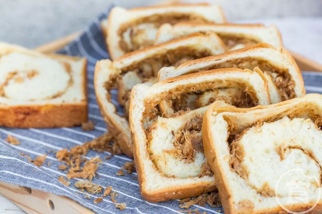 新鲜出炉的土司是热热的,甚至有点烫嘴。热气散发出来的香气真的让人欲仙欲死。这个土司里面是有加肉松的,松松软软的口感加上肉的气息,连我都爱上了!