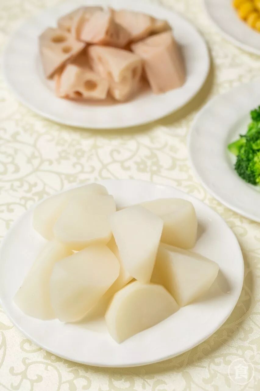盆菜底部铺着一层萝卜莲藕等素菜