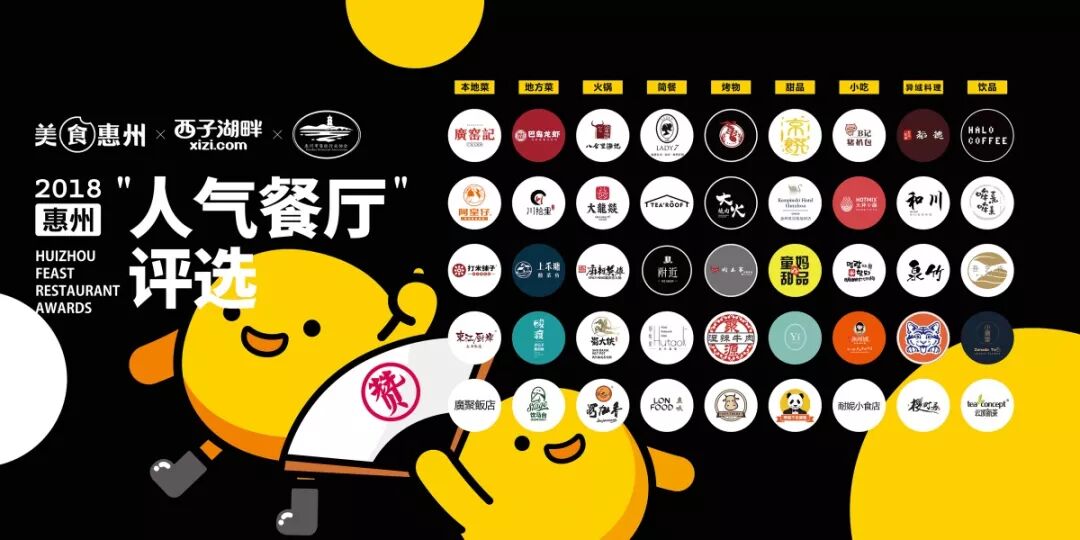 2018年12月30日至1月10日,通过微信进行大众线上票选,经由组委会初级评选,综合菜式口味、环境、服务、口碑等条件,在147家餐饮门店,共9个餐饮类目中,评选出前5名,共45家餐饮商铺获得“2018惠州人气餐厅评选”的殊荣。2018惠州人气餐厅评选吸引超27万粉丝关注。