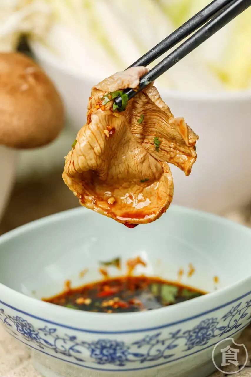 羊肉涮煮后微微卷曲,柔嫩鲜香。重口味的宝宝可以试试经典酱油+蒜蓉+香菜+小米辣的组合蘸酱。