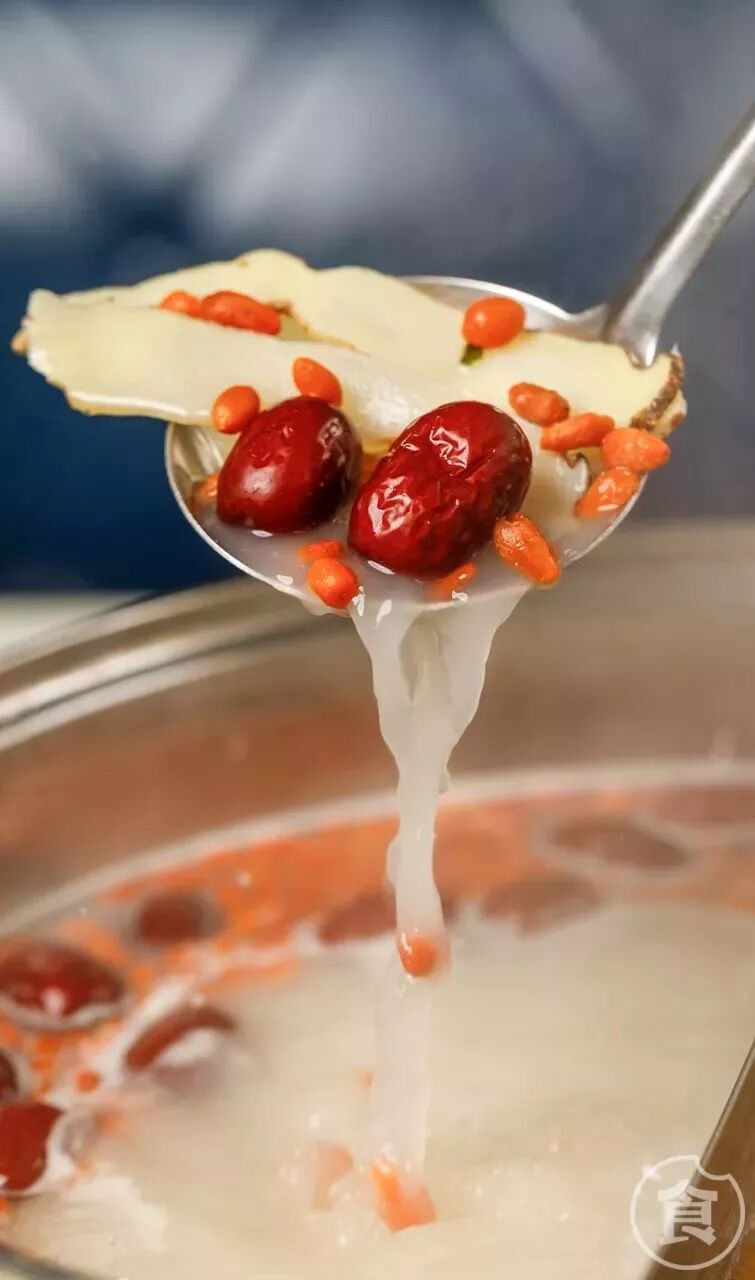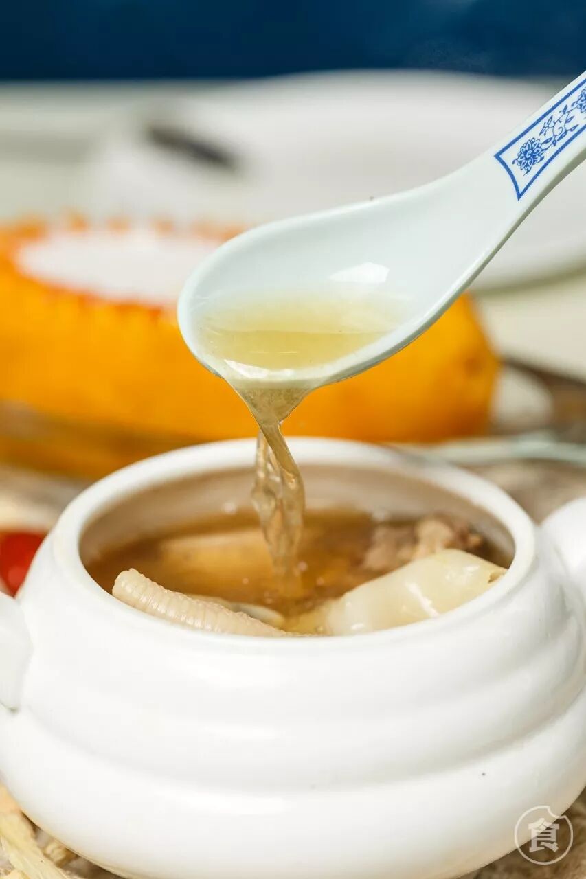 这一道“食用面膜”诚意满满,花胶、松茸菌、虫草花、鲜鸡脚…每一样都是“功效十足”的滋补佳品。